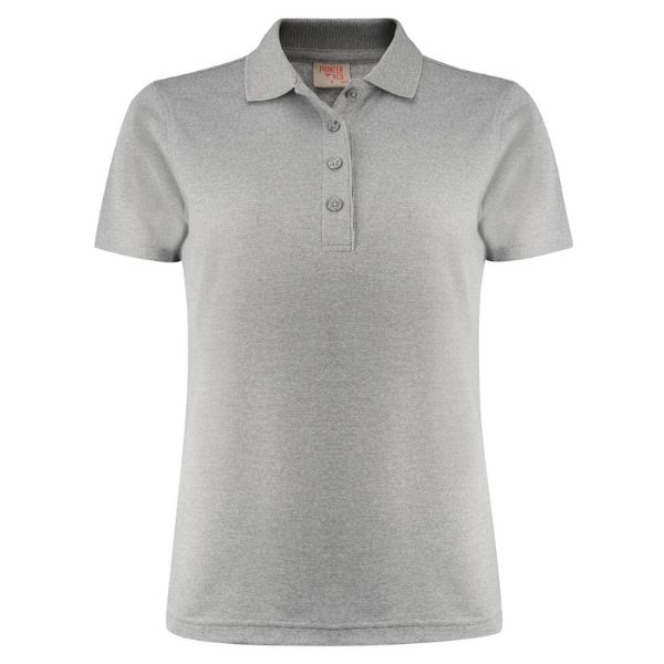 Urheilullinen Printerin tekninen pikeepaita. Sävy sävyyn napit. Naisten mallissa 4-nappinen lista. Vaate on värjätty ympäristöystävällisellä spindye-tekniikalla, joka kuluttaa vähemmän vettä, kemikaaleja ja energiaa. Oeko-Tex 100 -sertifioitu.